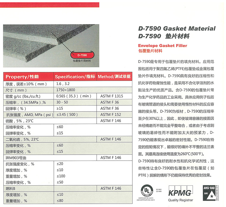 D-7590是我司推出的一款專用于搪玻璃反應(yīng)釜的無(wú)石棉密封板