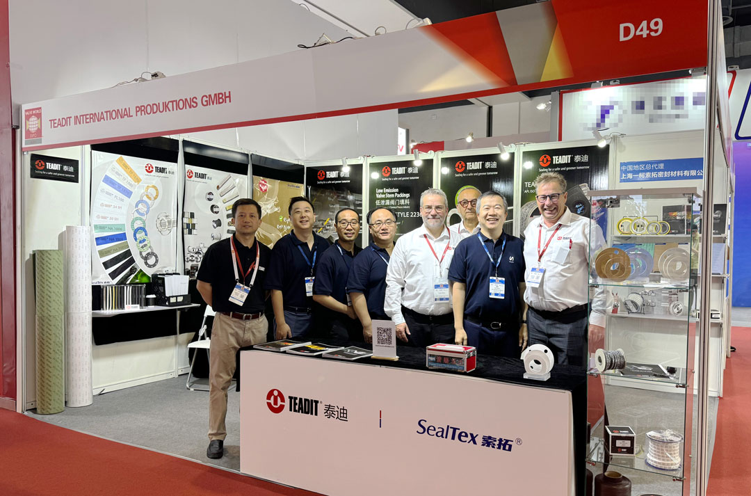 本次展會(huì)展出了帶有TEADIT® TAGTM 標(biāo)記的低逸散性可追溯盤(pán)根2848,以及API 622 測(cè)試平均泄漏率僅為2ppm、ISO 15848-1 密封級(jí)別A的2236盤(pán)根;多款膨體四氟和改性四氟材料,例如:24SH膨體四氟,TF1570\TF1580\TF1590改性四氟,以及各種符合BAM氧氣測(cè)試、PFAS Free,適用于超低溫工況、低泄漏等要求的密封產(chǎn)品。