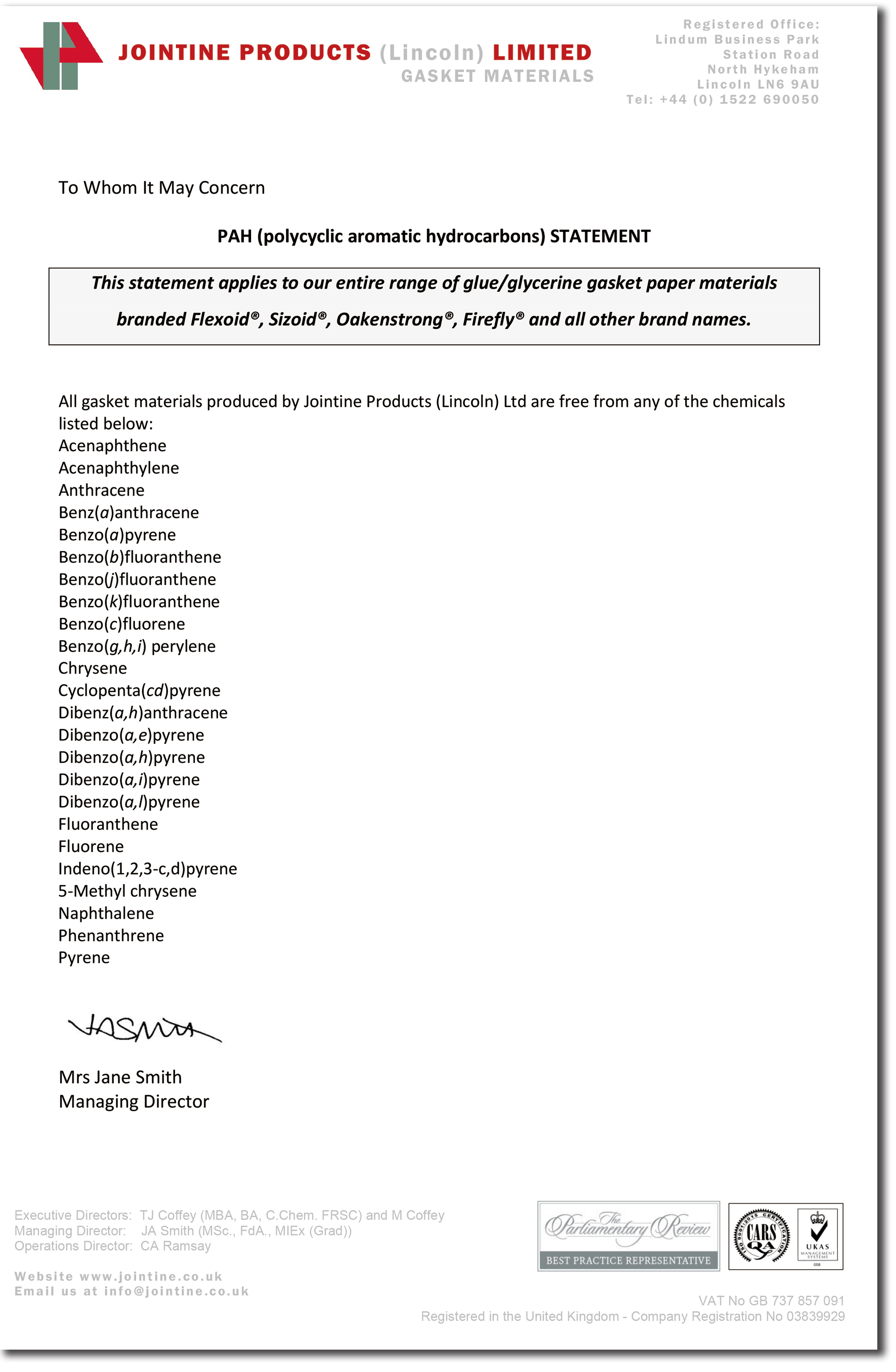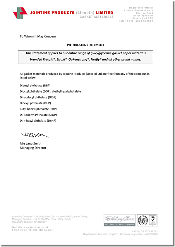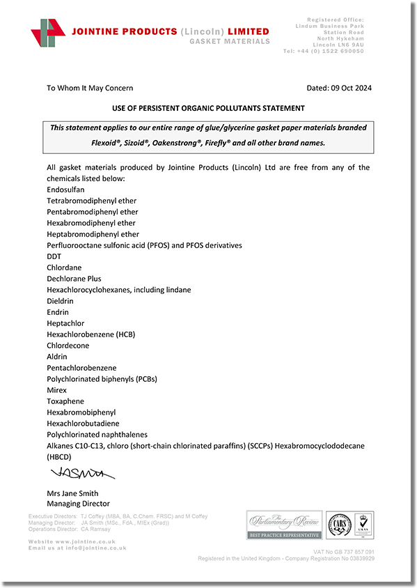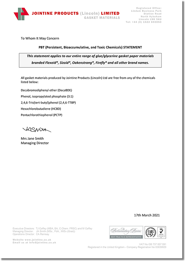 JOINTINE是全球領(lǐng)先的高質(zhì)量耐油植物纖維紙墊片材料制造商,其名下的品牌產(chǎn)品Flexoid/福來(lái)德、Cranflex是一種環(huán)保的耐油纖維紙墊片材料,可廣泛應(yīng)用于汽車、發(fā)動(dòng)機(jī)、傳動(dòng)設(shè)備等行業(yè),如下是JOINTINE發(fā)布的環(huán)保聲明函。